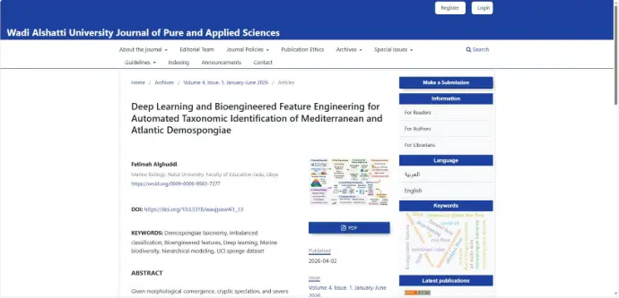 كلية التربية جادو ،جامعة نالوت تعزز حضورها في المجلات العلمية المحكمة ببحث متميز حول تصنيف الإسفنج البحري بتقنيات التعلم العميق