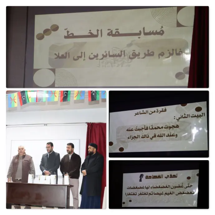 مسابقات تنافسية وإبداعات طلابية تميز برنامج الاحتفال بتنوعه وجاذبيته، حيث اشتمل على مسابقات تنافسية هادفة تمثلت في: - مسابقة "من الشاعر؟": التي اختبرت معرفة الطلبة بدواوين الشعر العربي عبر العصور. - مسابقة المناظرة: التي ناقشت قضية لغوية ومعرفية معاصرة حول مدى خدمة التقنيات الحديثة ومواقع التواصل الاجتماعي للغة العربية، حيث أظهر فريقي الموالاة والمعارضة قدرة فائقة على الحجاج والإقناع. مسابقة الخط العربي: التي كشفت عن مواهب فنية متميزة في تجسيد جمال الحرف العربي بأنماطه المختلفة.