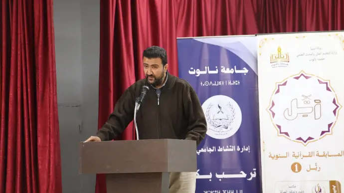 في أجواء إيمانية مفعمة بالسكينة والوقار، احتضن مدرج كلية التربية نالوت صباح يوم الأربعاء الموافق 15 أبريل 2026م، حفل ختام المسابقة الأولى لحفظ القرآن الكريم التي أُقيمت تحت شعار) رَتِّل)