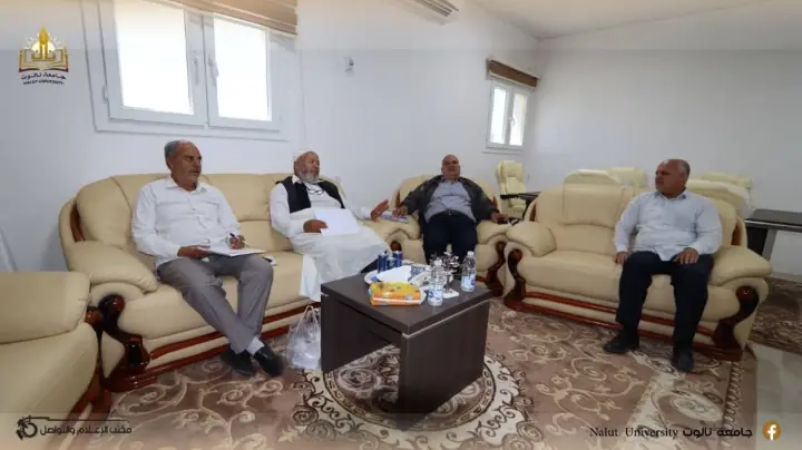 في إطار الاستعدادات لانعقاد المؤتمر العلمي الدولي الثالث لعلماء وأعلام ومعالم نفوسة وزوارة ماضيا وحاضرا عقد صباح اليوم الاثنين الموافق 06 مايو 2024 م بمقر الإدارة العامة لجامعة نالوت اجتماع ضم السيد رئيس جامعة نالوت أ.د محمد مسعود قنان الرئيس الشرفي للمؤتمر والسيد رئيس المؤتمر الدكتور صالح سعيد العلوي والسيد رئيس اللجنة التحضيرية الأستاذ علي موسى الفيلالي والأستاذ صلاح مسعود الدبلي رئيس مؤسسة نفوسة للتواصل الثقافي الاجتماعي والسيد شعبان امحمد المشايخ رئيس اللجنة الإعلامية للمؤتمر.