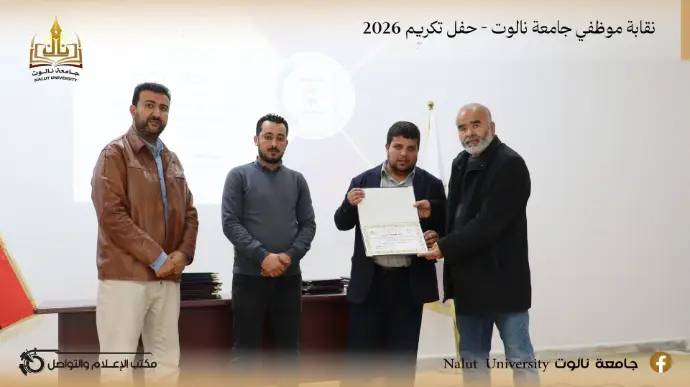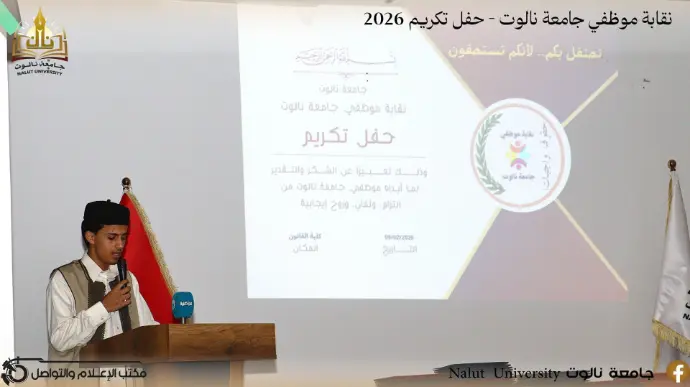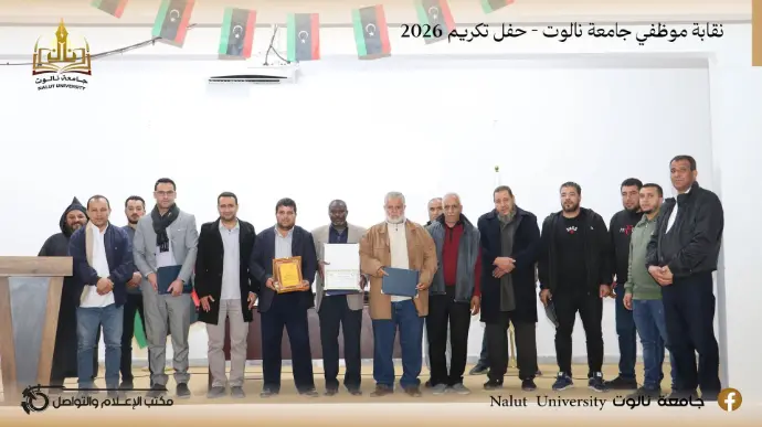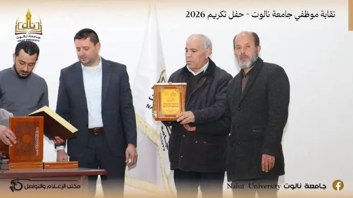 In an atmosphere filled with appreciation and gratitude, and under the slogan "Loyalty to Those Who Give," the Employees' Union of Nalut University organized a special honoring ceremony on the morning of Monday, February 9, 2026, in the halls of the Faculty of Law, celebrating a select group of employees who dedicated themselves to serving the university.