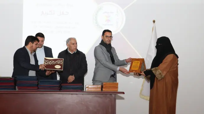 The ceremony began with the recitation of verses from the Holy Quran by the student Abdul Rahman Barqiq, followed by a moment of silence in respect for the national anthem. The event included speeches that praised the efforts of the honorees, with Professor Mohamed Issa Zakri delivering a speech on behalf of the employees' union.