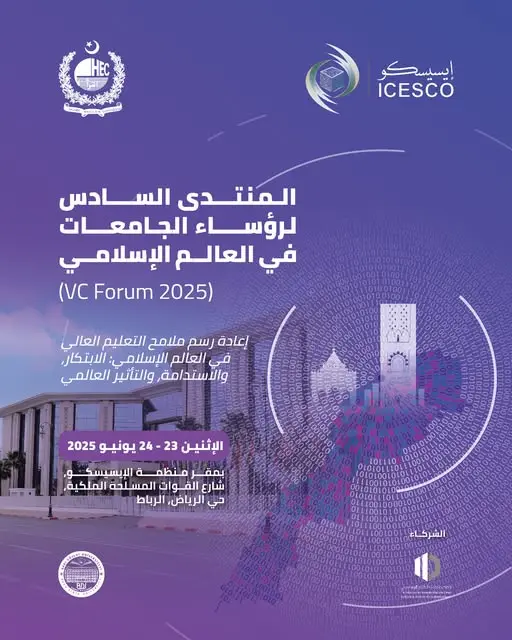 يُعقد هذا المنتدى الهام في المملكة المغربية بالشراكة بين منظمة العالم الإسلامي للتربية والعلوم والثقافة (الإيسيسكو) ولجنة التعليم العالي في جمهورية باكستان الإسلامية، ويستمر على مدار يومين، 23 و24 يونيو 2025م
