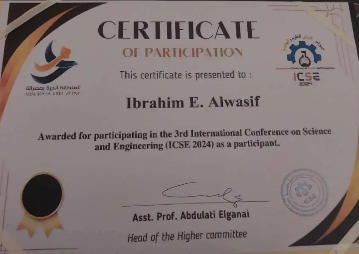 شارك الأستاذ إبراهيم الوصيف شيحة عضو هيئة التدريس بكلية الهندسة جادو في أعمال المؤتمر الدولي الثالث للعلوم الهندسية الذي نظمته كلية الهندسة بجامعة بنى وليد بتاريخ 05 سبتمبر 2024 م تحت شعار “البحوث العلمية نتاج الدراسة لخدمة المجتمع “بورقة علمية بعنوان :-
