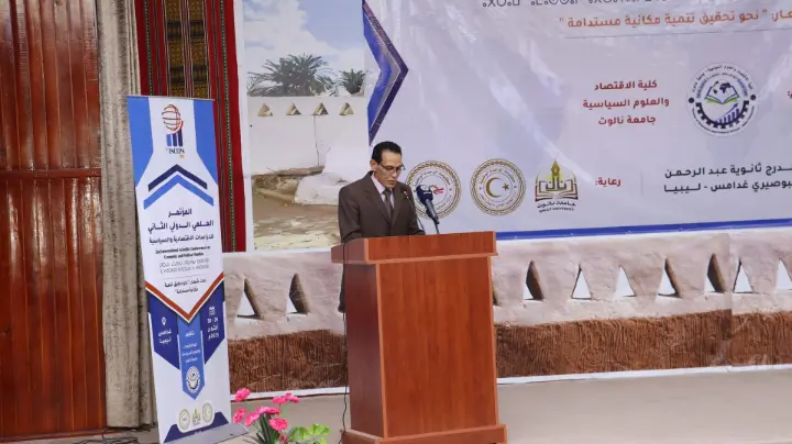 تحت رعاية من جامعة نالوت، وفي تنظيم متميز من كلية الاقتصاد والعلوم السياسية بالجامعة، انطلقت مساء يوم الثلاثاء الموافق 28 أكتوبر 2025 في مدرج ثانوية عبد الرحمن البصيري ببلدية غدامس. فعاليات المؤتمر العلمي الدولي الثاني للدراسات الاقتصادية والسياسية،